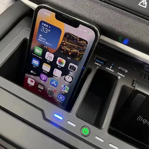 · Functionality: Wireless charging and storage in one convenient unit, enhancing the functionality of your vehicle’s interior