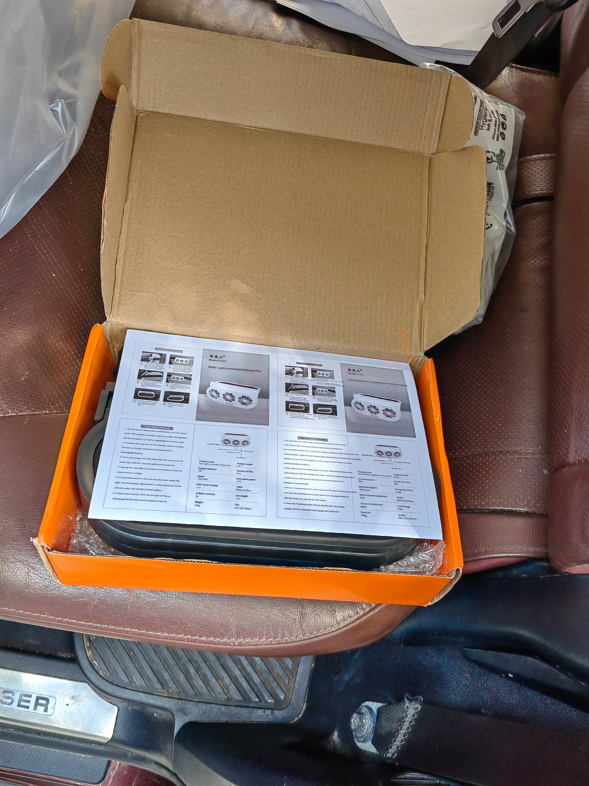• Included: 1 × Solar Car Exhaust Fan, 1 × USB data cable, User manual