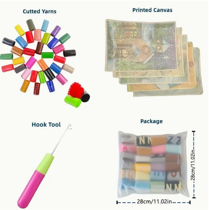 Create a unique decorative touch for your home with the Butterfly & Floral Latch Hook Kit. Includes a pre-printed pillow cover measuring 43x43cm in vibrant purple and yellow, perfect for sofa or home accents. This easy and enjoyable DIY craft is suitable for all skill levels, allowing you to express creativity while making a stylish pillow. Ideal as a fun hobby project or a thoughtful gift for craft enthusiasts.