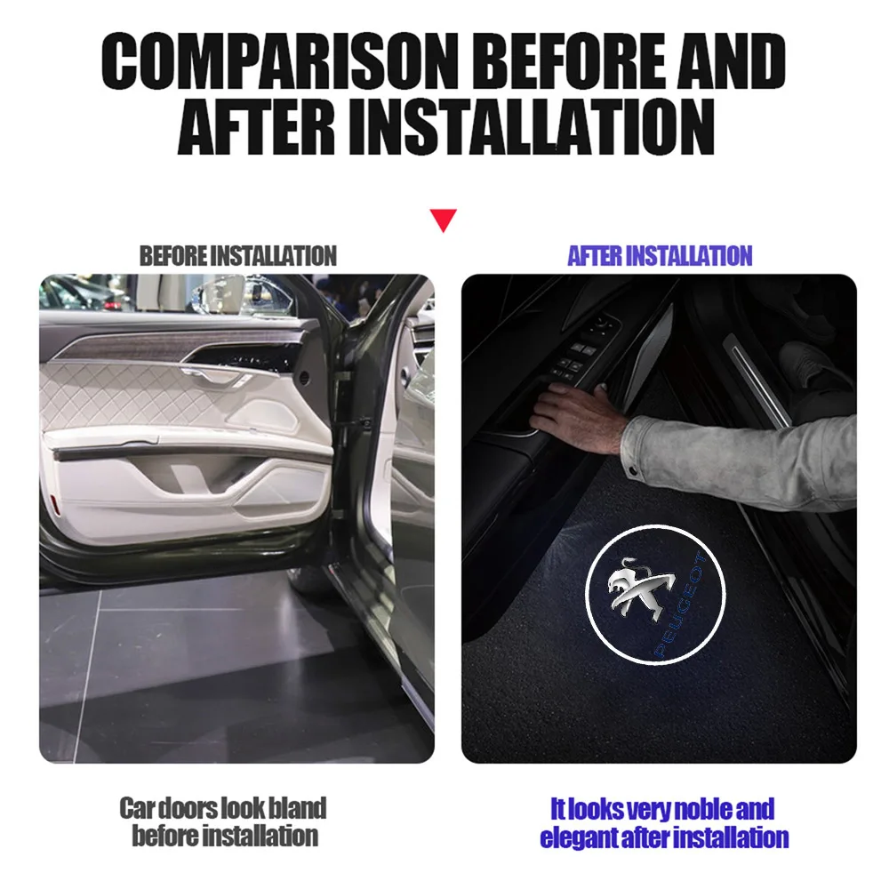 LED Door Welcome Lamp Peugeot 206 3008 2008 308 408 207 307 508 301 اضاءة ترحيبية للباب بيجو