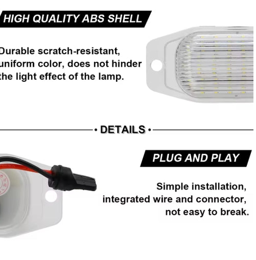 Installation is quick and straightforward. Each set includes 2 pieces, engineered as a direct replacement for your vehicle’s existing license plate lights, so no modifications or extra tools are required. The plug-and-play design ensures a secure fit and hassle-free setup, saving you time while upgrading your vehicle’s look.
