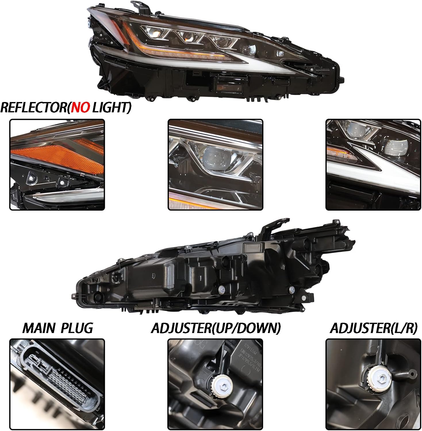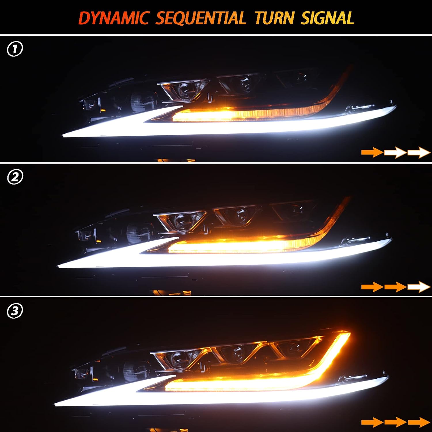 Headlights Assembly Compatible with 2019 2020 2021 2022 Lexus ES 250/300h/350,Upgrade Full Led Triple Beam Headlamps W/Sequential Turn Signal&Auxiliary High Beam,Left+Right Pair, Plug and Play