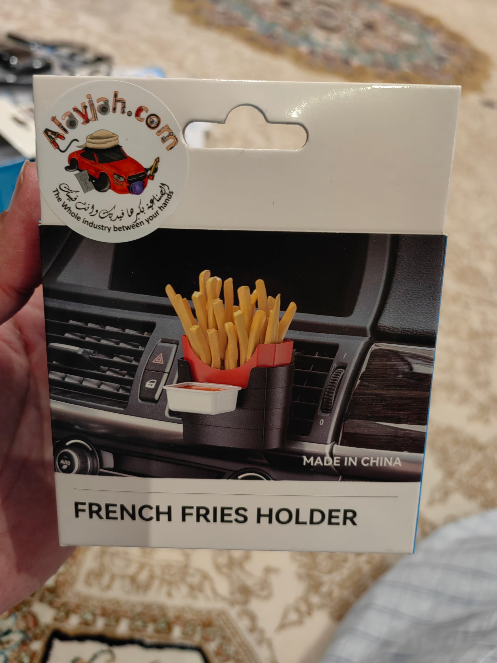 ارتقِ بتجربة تناول الوجبات الخفيفة أثناء القيادة مع حامل البطاطس والصلصات الفاخر للسيارة – الرفيق المثالي لعشاق الوجبات السريعة أثناء التنقل! يتميز بتصميم ذكي يثبت بسهولة في فتحة تهوية السيارة ليمنحك طريقة مريحة وأنيقة لحمل البطاطس المقلية، قطع الدجاج، والصلصات دون فوضى.