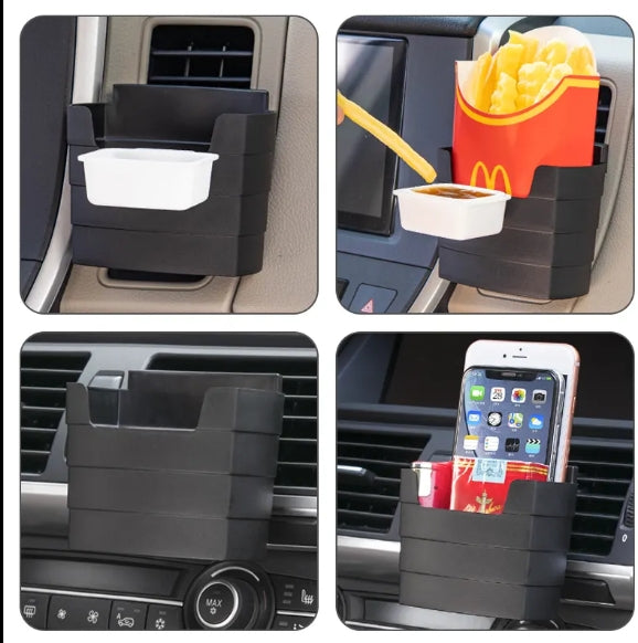 Upgrade your on-the-go snacking experience with our Universal Luxury Car Fry & Sauce Holder – the perfect companion for your drive-through cravings! Designed to fit securely into your car's air vent, this sleek and luxurious black snack tray keeps your french fries, nuggets, and dipping sauces within easy reach while keeping your car clean and organized.
